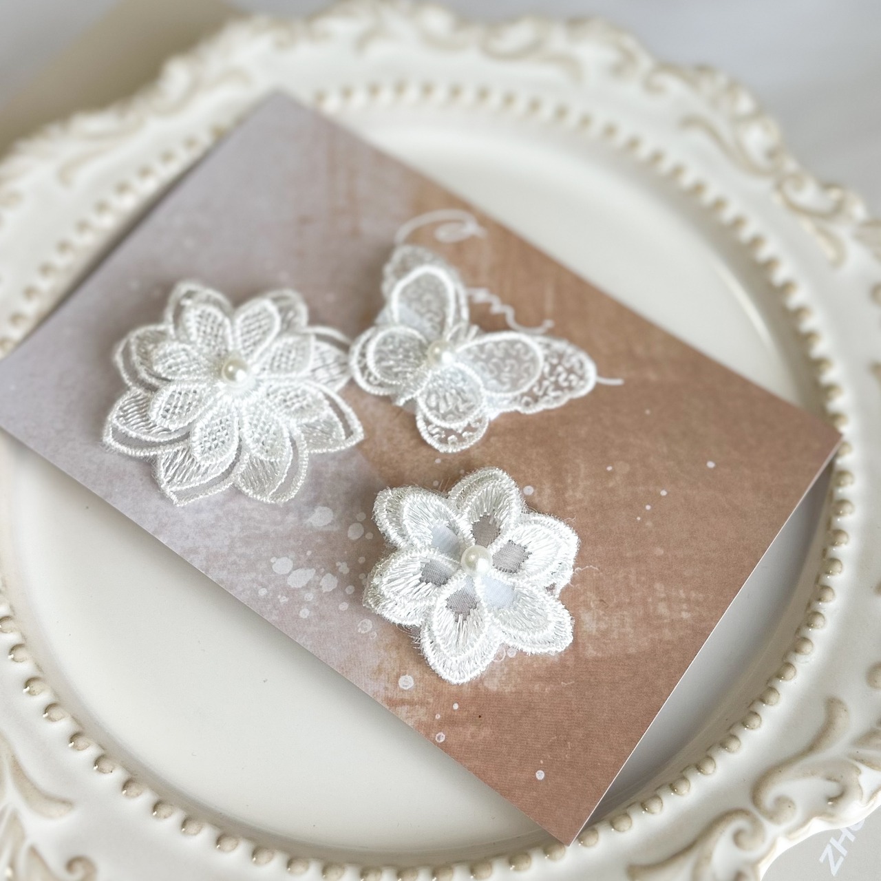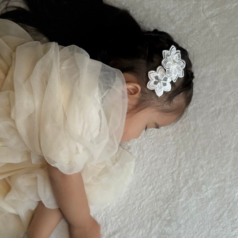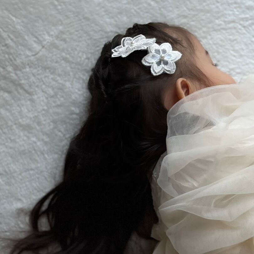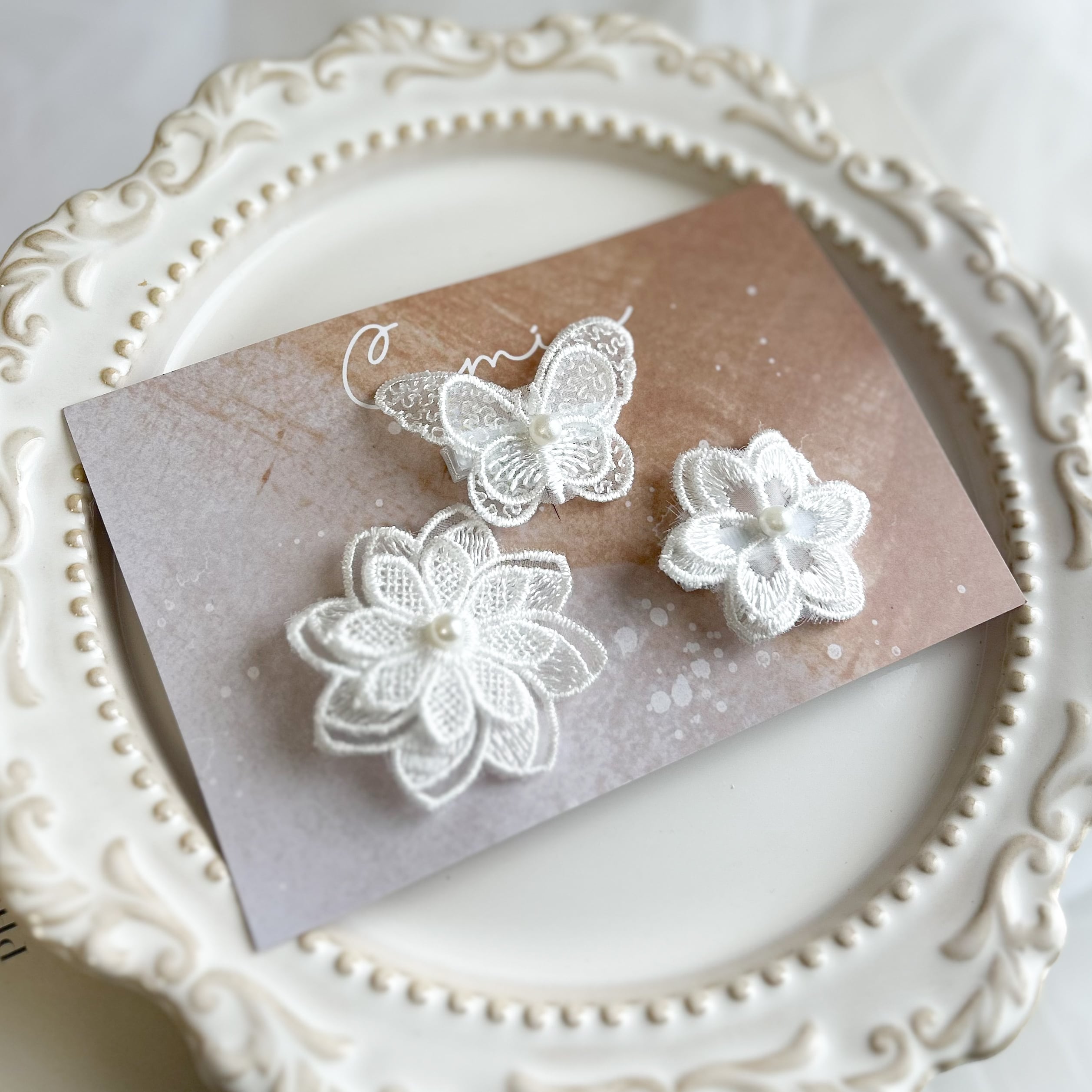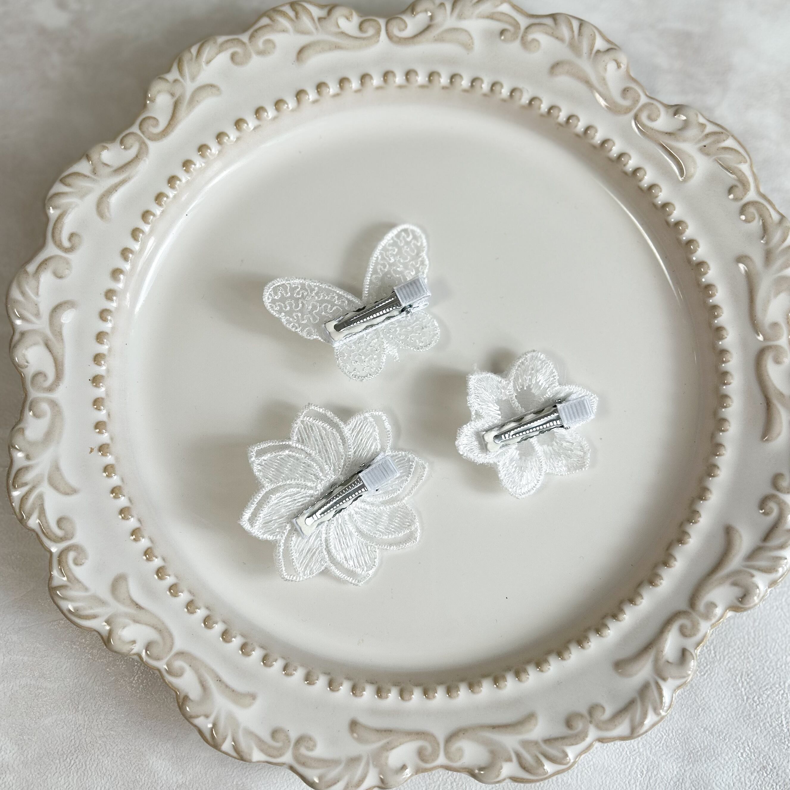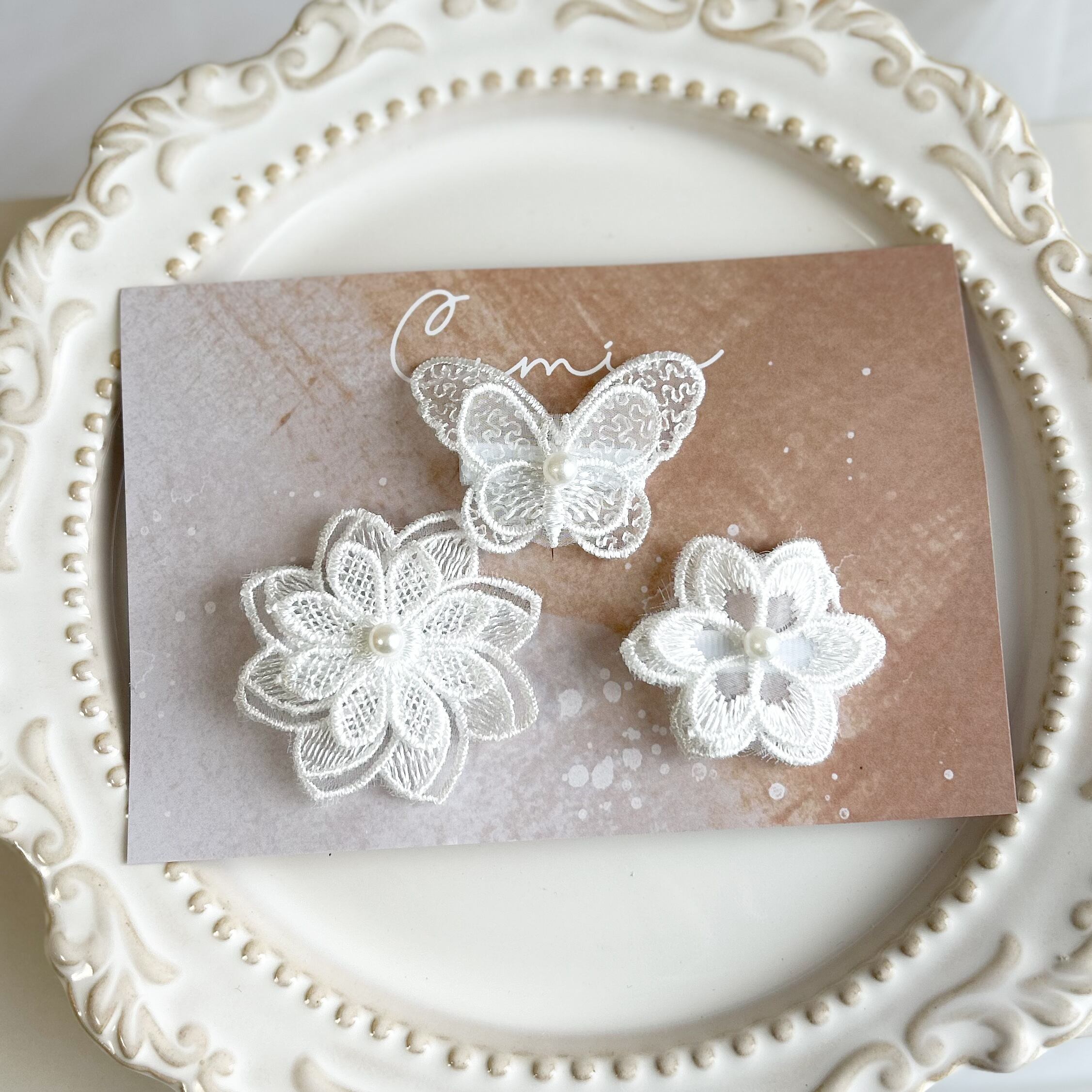 ホワイトレースヘアクリップ3点セットです。