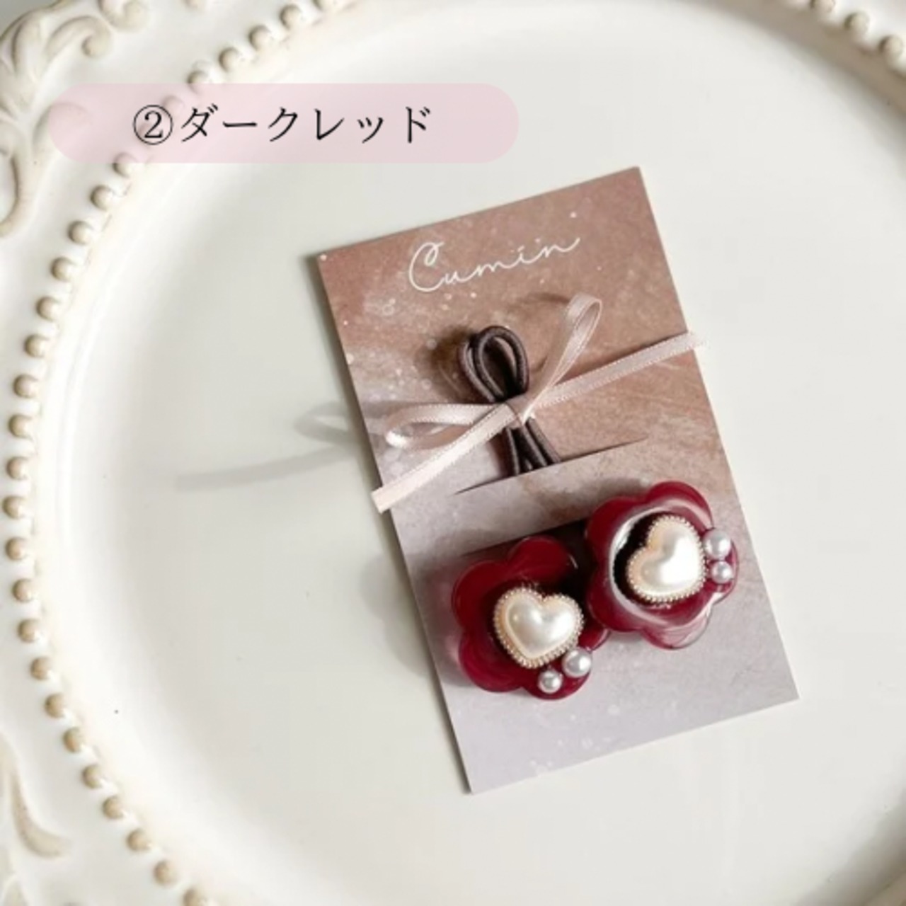 アンティーク調のハートパールをつけた
